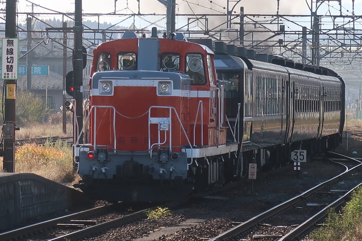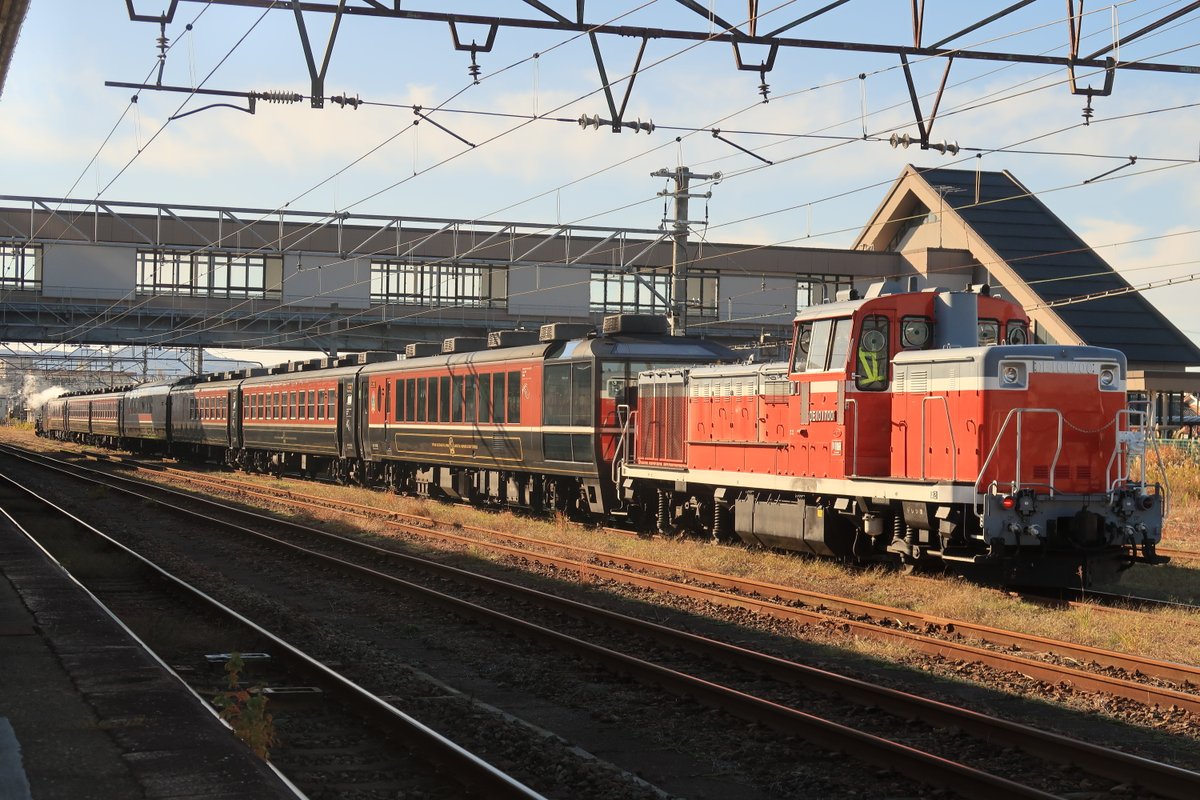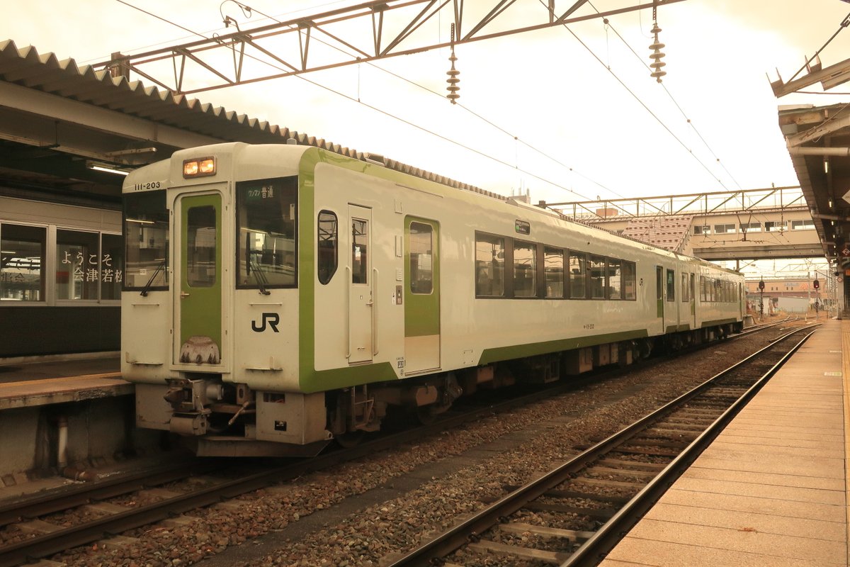 再び秋の会津へ。 今回は上越新幹線経由で新津から磐越西線で。もちろんSLばんえつ物語号。 待ち構えていたのはDE10 1701号機の入換列車。 通常は入換のみであるが、今期は途中駅で落ち葉空転により立ち往生する事象が発生していたため、 この子は会津若松までお付き合いすることになった。