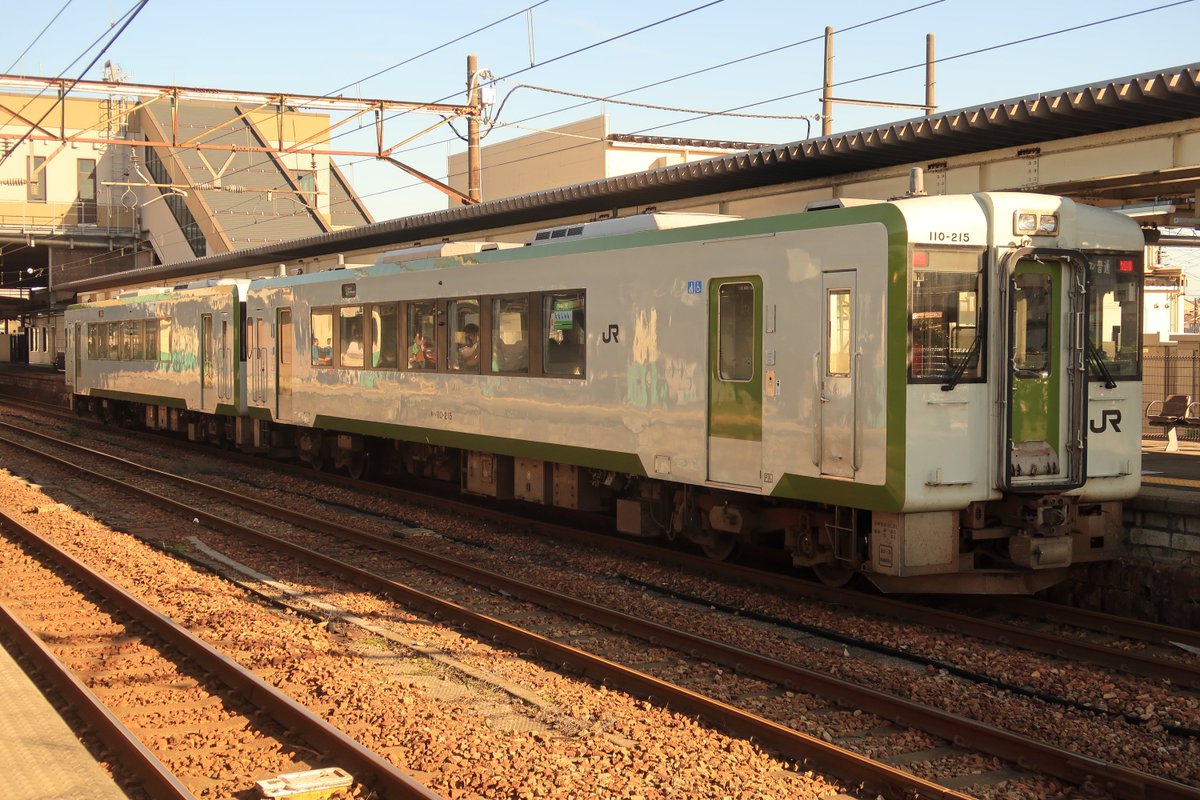 行き違いの423Dは国鉄風ラッピングのキハE120-2+キハ110形。霧が晴れてきた。